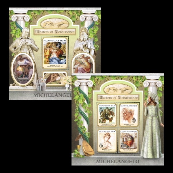 - ■ソロモン諸島切手 2017年 ミケランジェロ / ルネサンス シート+4種シート