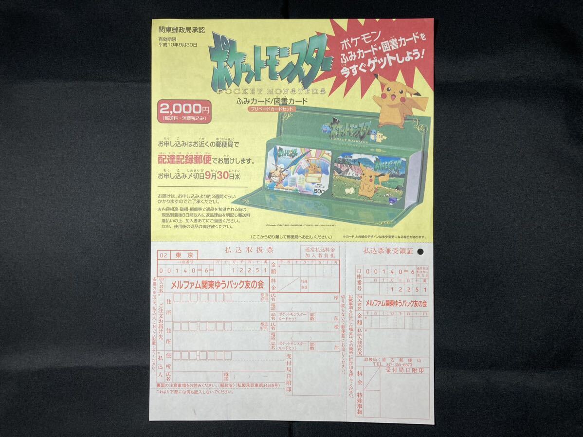 > ポケモン ふみカード ・ 図書カード 申込書 1998 ちらし チラシ フライヤー 当時物 希少 Pokemon Fumi Card Application Form
