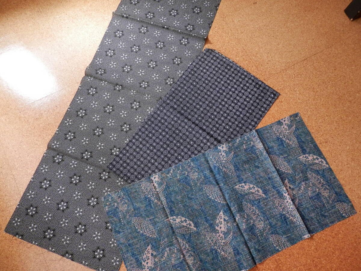 > 着物はぎれ3枚・長さ=約72㎝×37㎝+63㎝×57㎝+112㎝×37㎝ リメイク素材