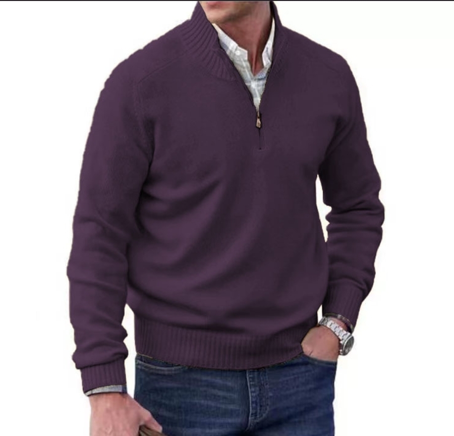 - 秋冬 / ニット メンズ セーター ハーフジップ ブークレ ハイネック タートル ルームウエア プルオーバー メンズニットトップス / パープル