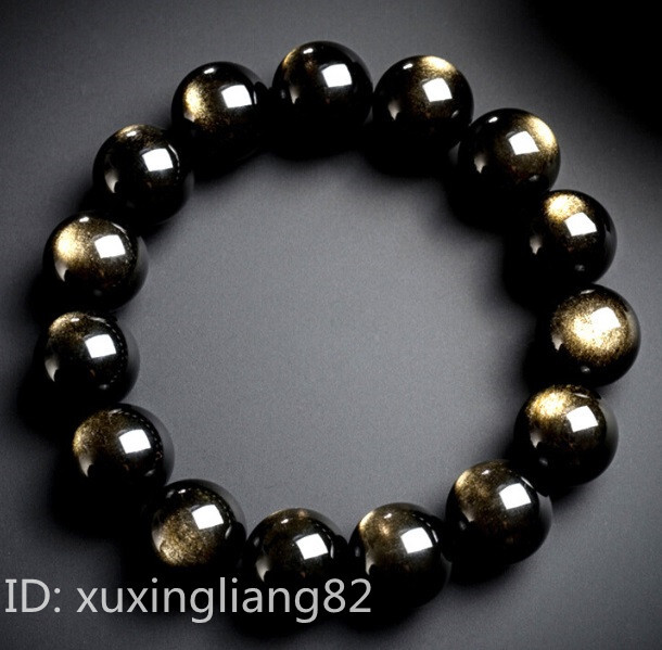 > 高級逸品★天然金曜石 ブレスレット12mm メンズ バングル パワーストン 開運 財運 お守り 男女兼用 アクセサリー