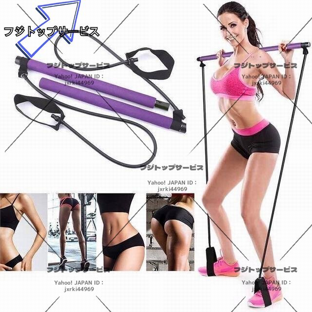 - フィットネス トレーニング ヨガ ダイエット 筋トレ ボディメイク 自宅トレーニング チューブ バー付き 低負荷モデル パープル