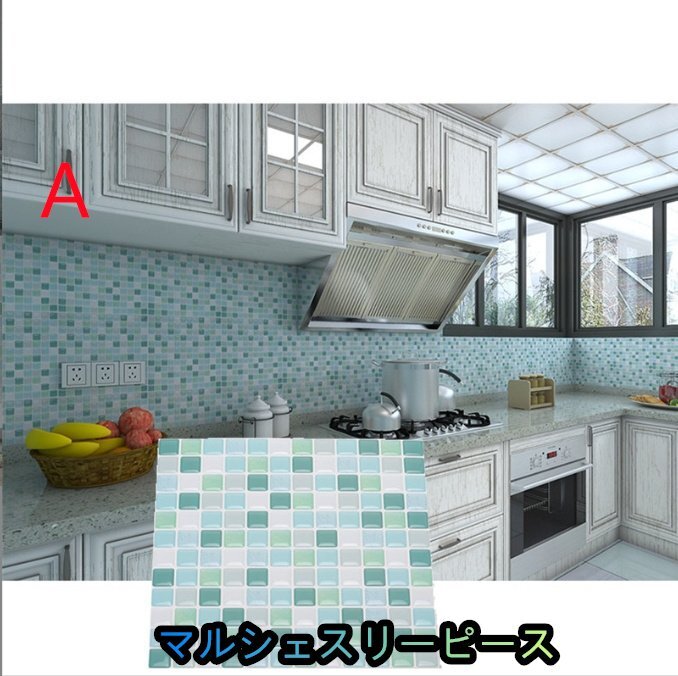- 【10枚】タイルシール 防水 耐熱 キッチン 洗面所 トイレ DIY 家具やアイテムの装飾 モザイクタイルシート 壁紙シール 3D
