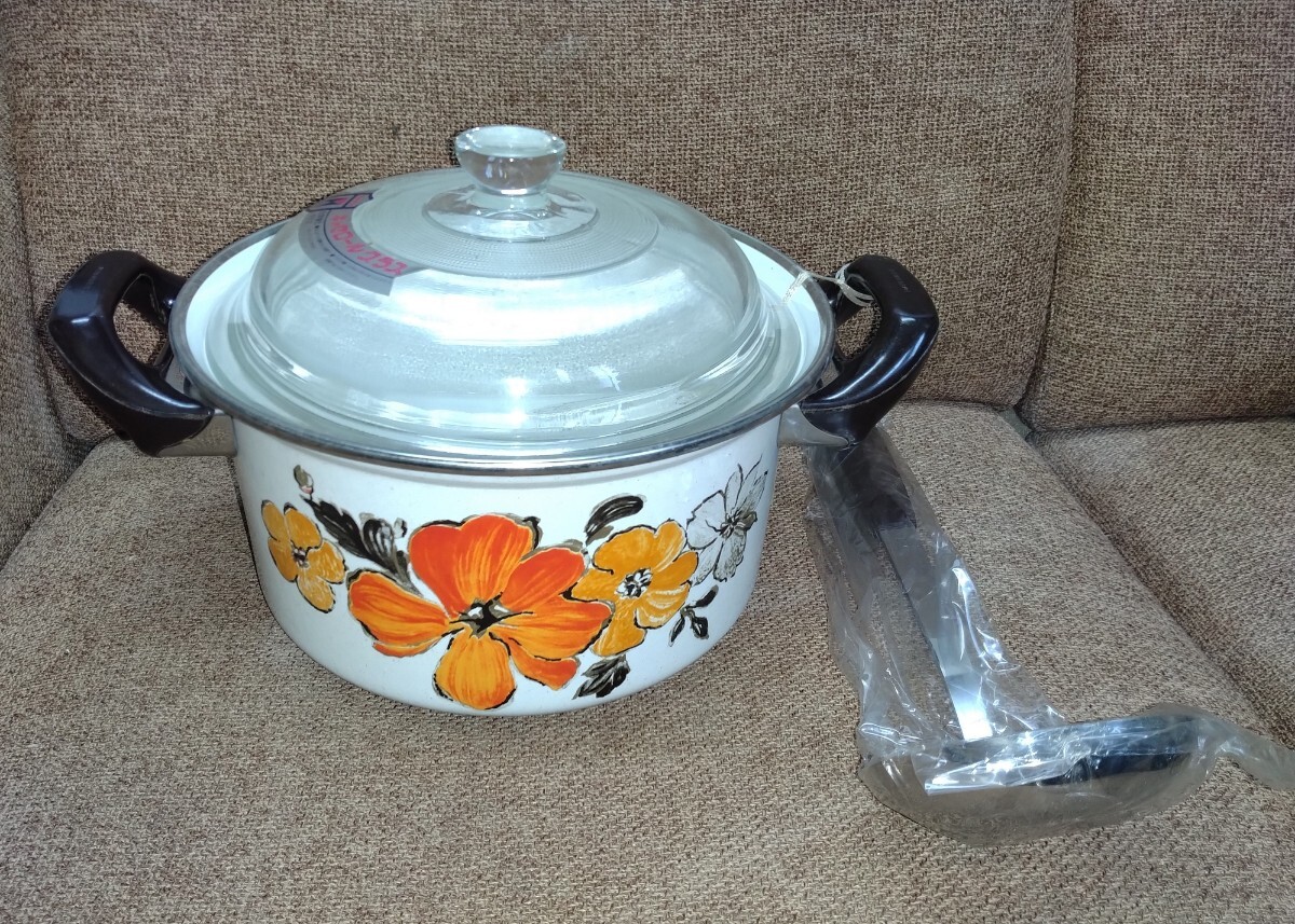 - K517【未使用】 20cm ホーロー両手鍋 キャセロールグラス 両手鍋 ホーロー鍋 昭和レトロ