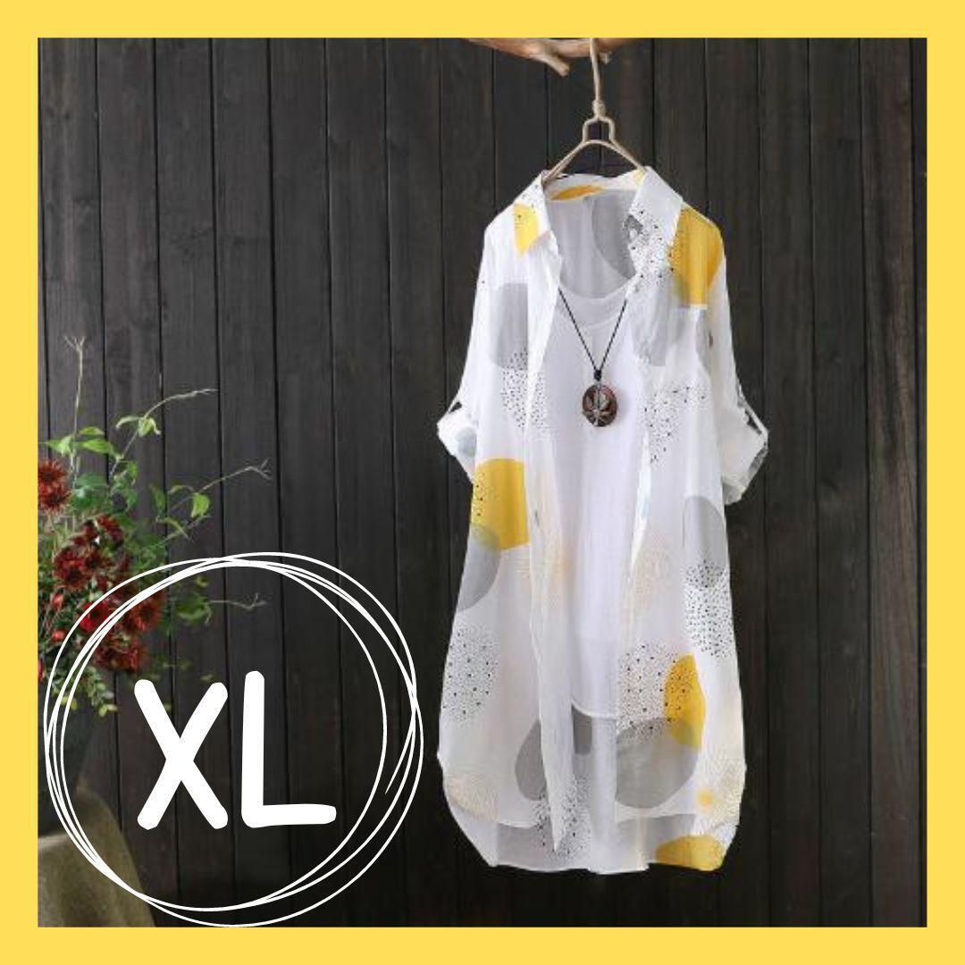 - シャツ ブラウス オーバーサイズ チュニック 水玉 イエロー 韓国