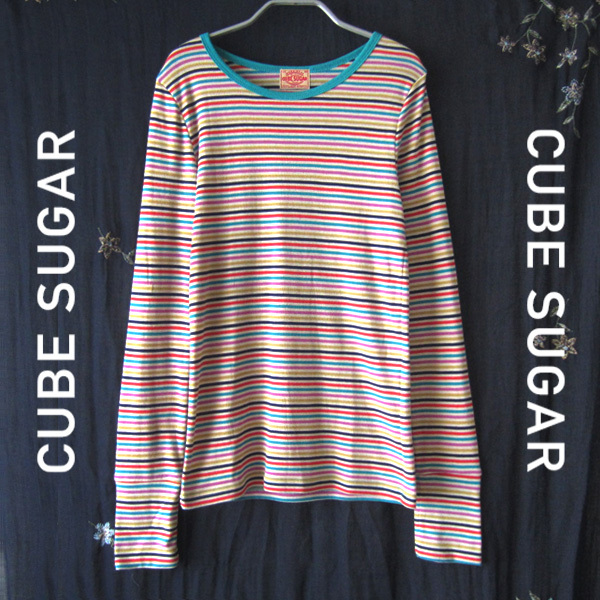 - 美品 CUBE SUGAR/キューブシュガー★ マルチカラーボーダー 長袖Tシャツ
