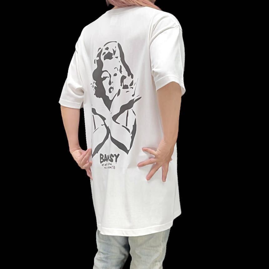 > 新品 ビッグ バックプリント & 胸ワンポイント BANKSY バンクシー マリリンモンロー コルナ サイン 大きい Tシャツ オーバーサイズ XXL(3L)