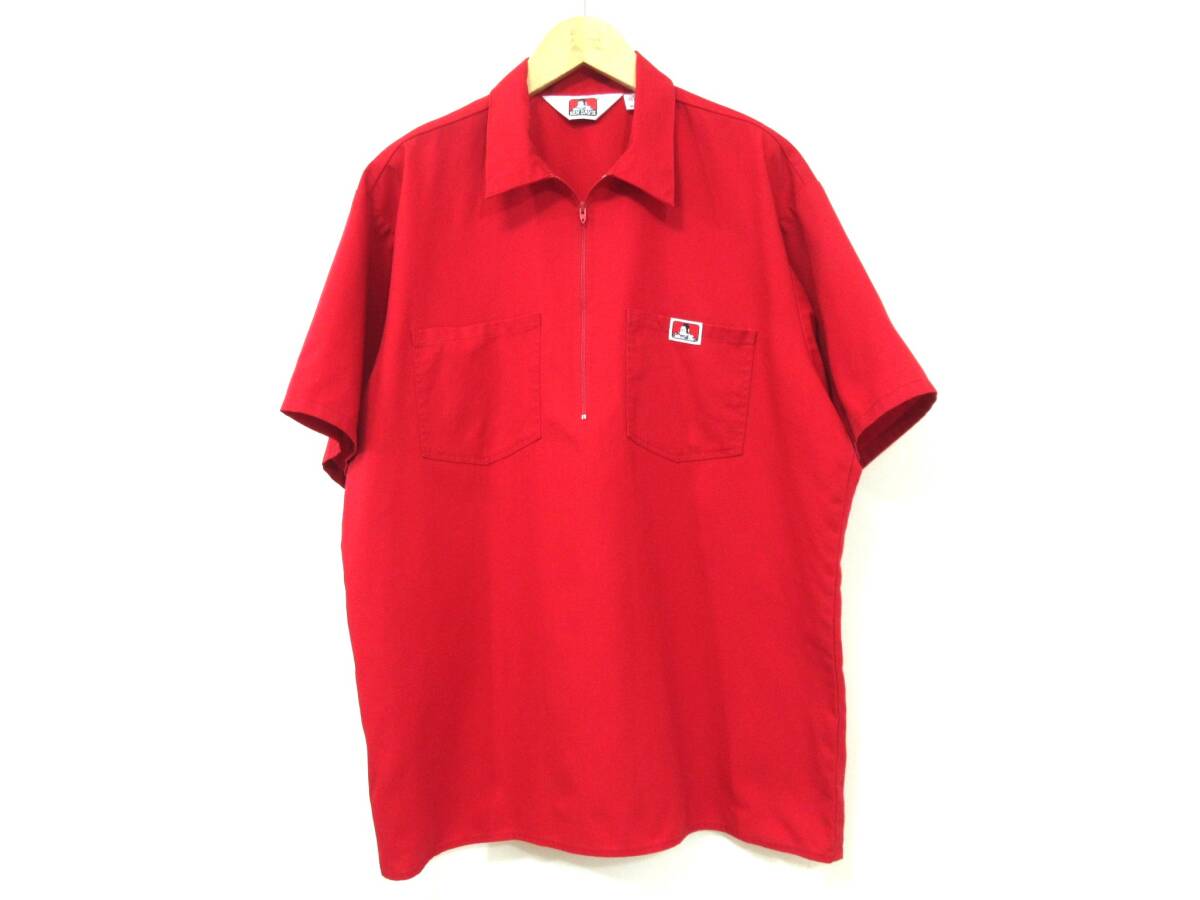 - ビンテージ USA製【BEN DAVIS】TALONジップ 半袖ワークシャツ アメリカ製 ベンデイビス ハーフジップシャツ 赤 レッド