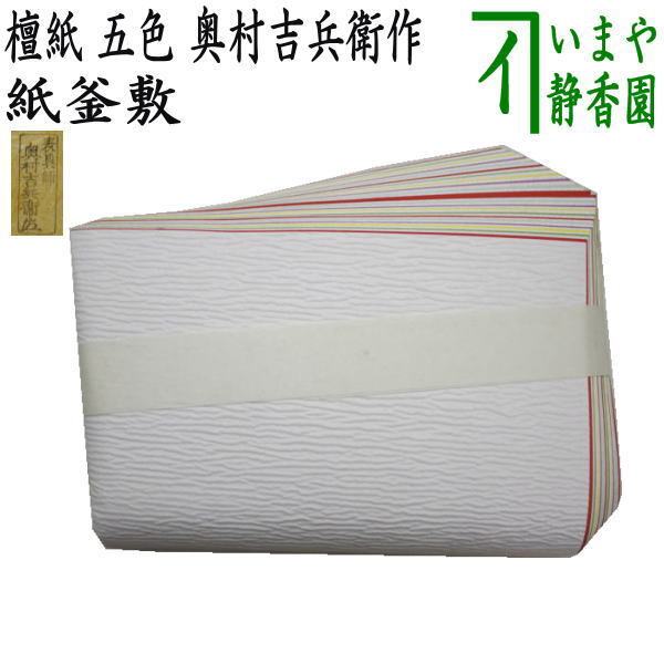 紙釜敷は、千利休が懐紙を用いたのが始まりで、真の位の釜敷とされ、席中には炭斗に入れず懐中して出ます。のちに奉書・檀紙などや箔押など好まれるようになります。