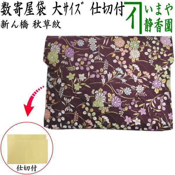 - 茶道具 数奇屋袋 数寄屋袋 大サイズ 仕切り付き 新ん橋 新橋 正絹 秋草紋 茶道