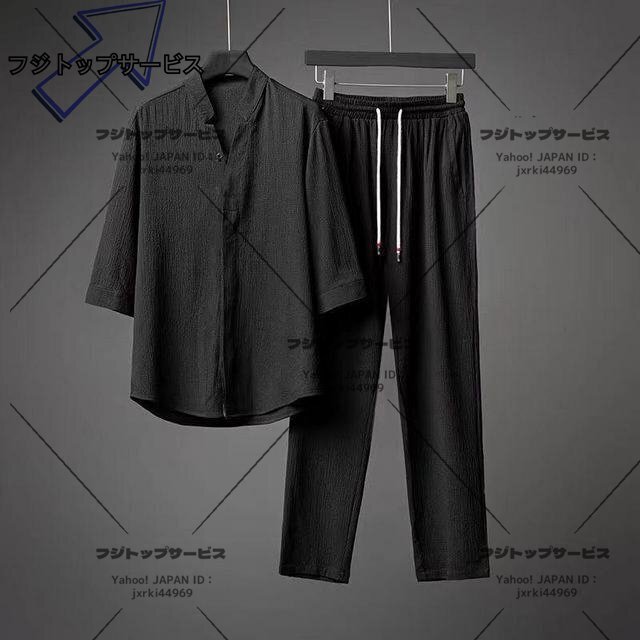 - 夏 Tシャツ ロングパンツ パンツ メンズ ルームウェア 部屋着 涼しいセットアップ 上下セット ブラック 2XL