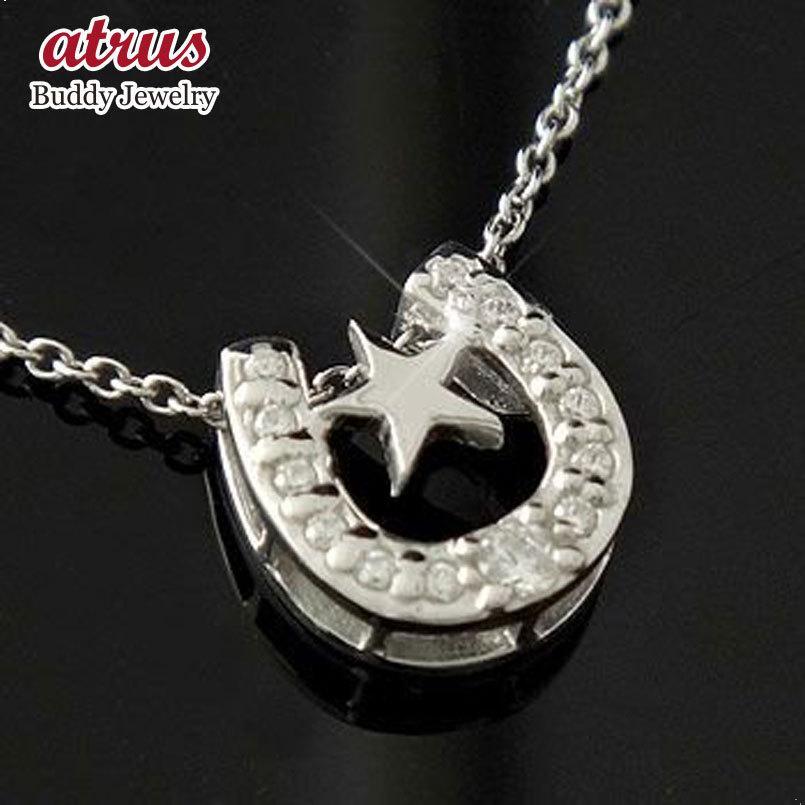 > プラチナ ネックレス ダイヤモンド トップ 馬蹄 ホースシュー トップ レディース 星 スター チェーン 人気 ダイヤ 蹄鉄 バテイ