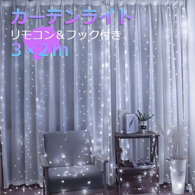 - フック付き イルミネーション カーテンライト 3×2m USB ホワイト