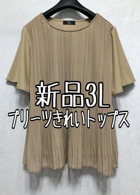 - 新品☆3Lベージュ系♪細かいプリーツおしゃれトップス♪☆b904