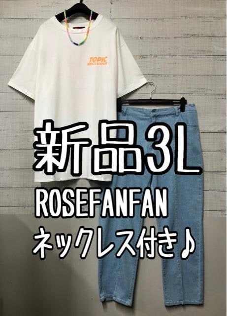 - 新品☆3L♪ROSE FANFAN♪ネックレス付Tシャツ&デニムのセット☆k615