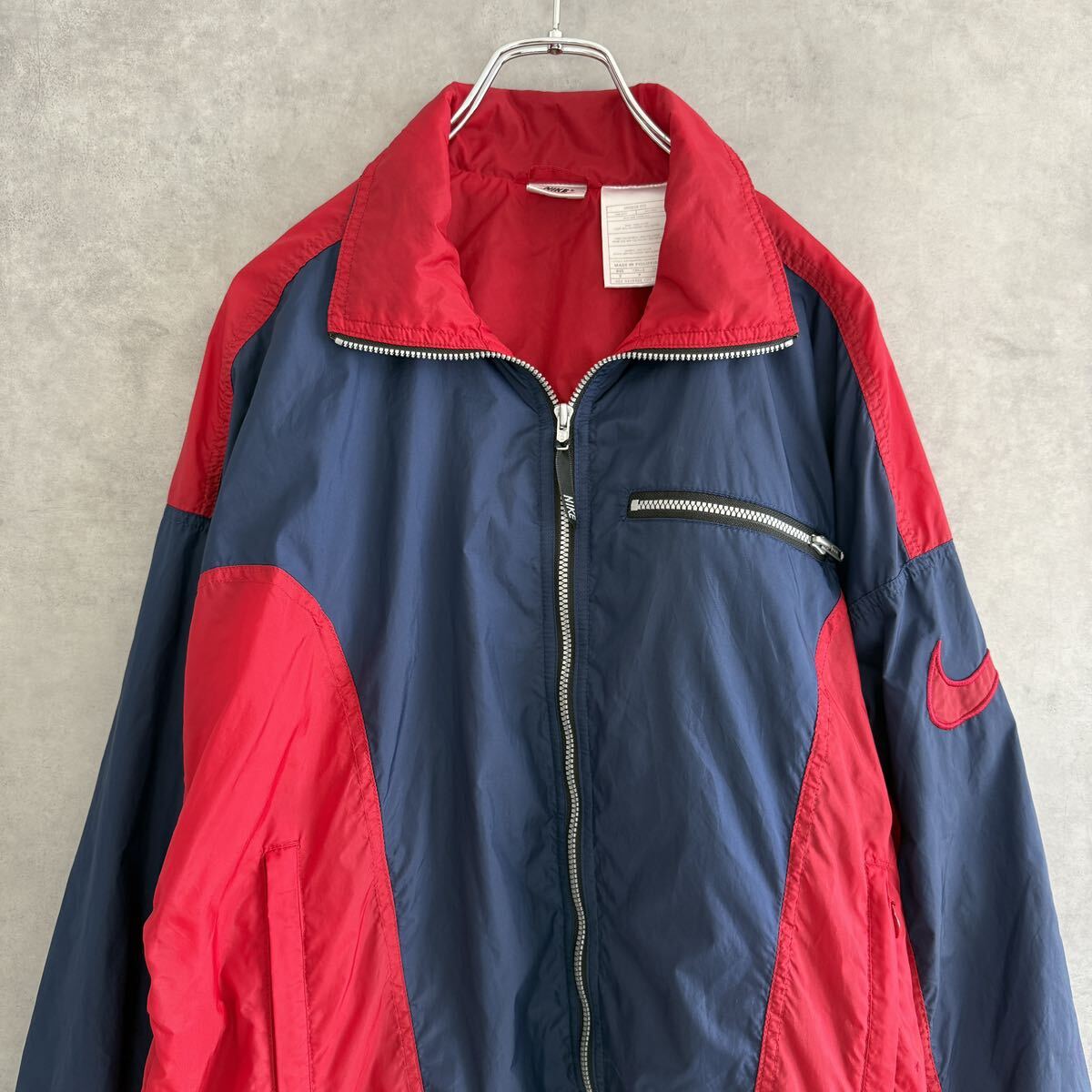 - 90s NIKE ナイキ ナイロンジャケット ネイビー×レッド S M〜L相当