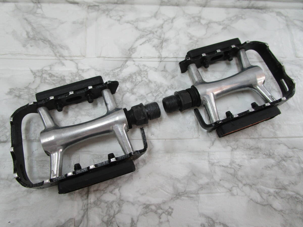 - W.24.I.30 TO ☆ フラットペダル wellgo 7-M085A ブラック×シルバーカラー ペア USED ☆