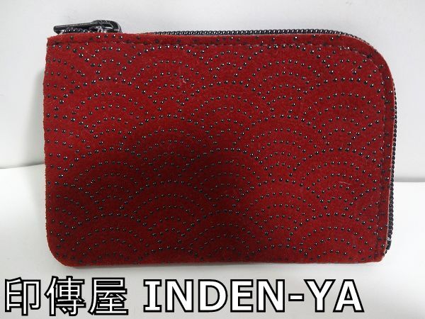 - X4I056◆本物◆ 印傳屋 INDEN-YA レッド 波柄 ハーフジップ コインケース 小銭入れ 財布
