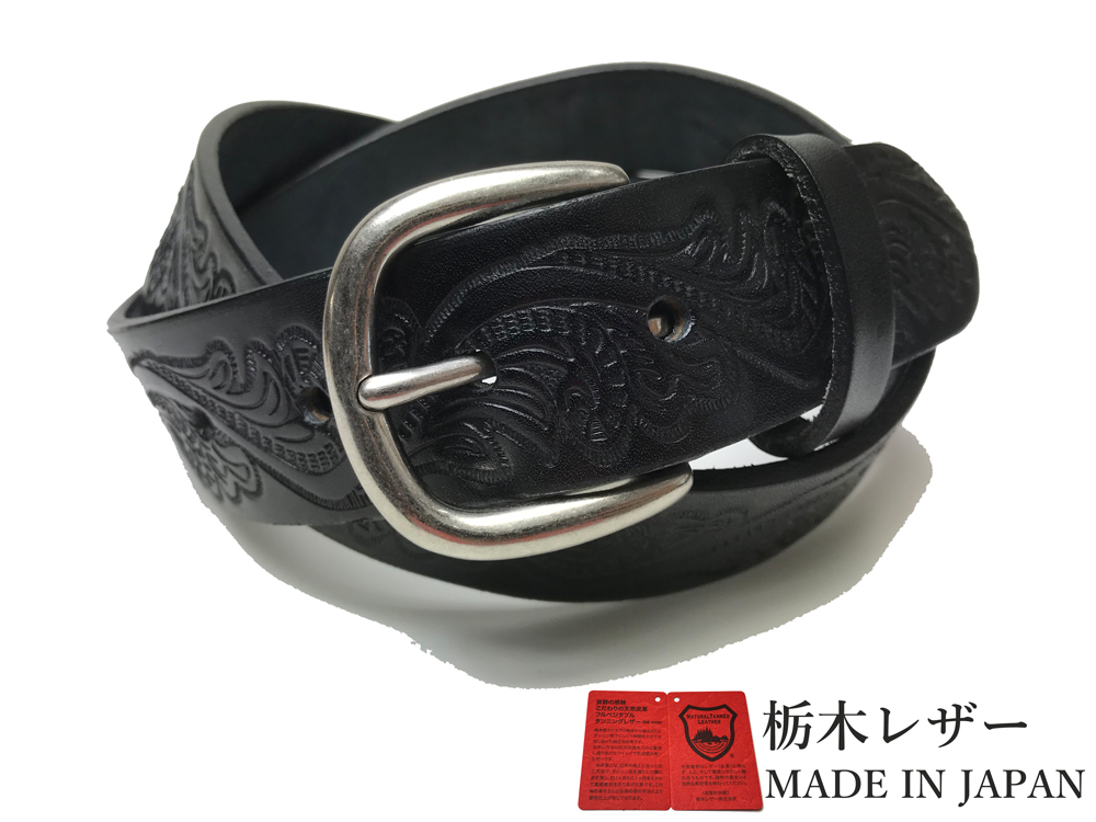 - 新品 栃木レザー ベルト 固定サイズ 本革 牛革 メンズ 黒 国産 クラフト カジュアル 35mm W034BKS 95