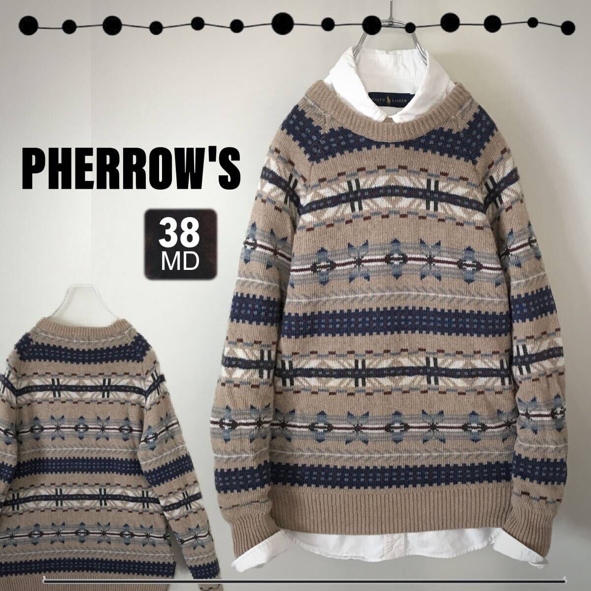 > pherrow’s フェローズ★雪ノルディック柄★ジャガードウールニット★クルーネックセーター★サイズ38/MD #2309S115