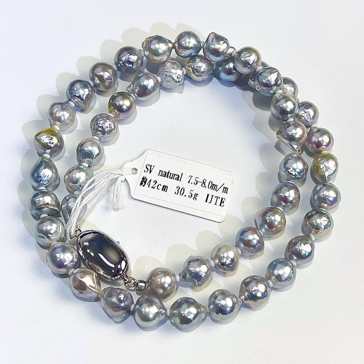 - SV AKOYA ナチュラル 無調色 アコヤパール バロック ネックレス ナチュラルグレイ 7.5-8mm 天然 本真珠 レディース アクセサリー 新品
