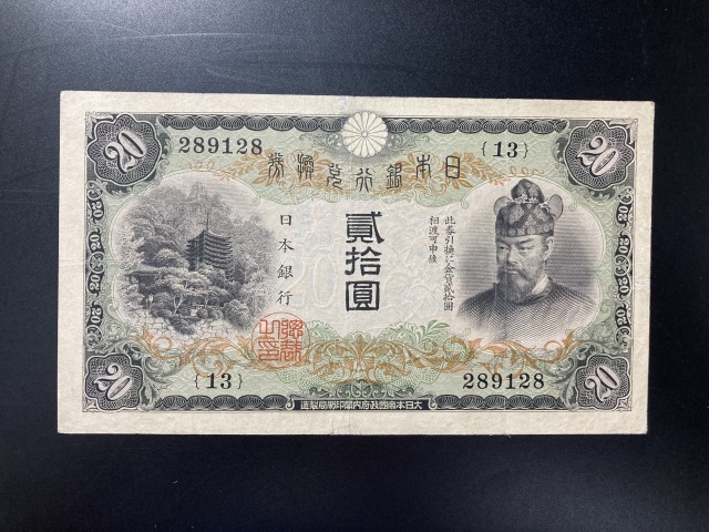 - 【注目/珍品/レア/希少/貴重】縦書き20円札 藤原鎌足