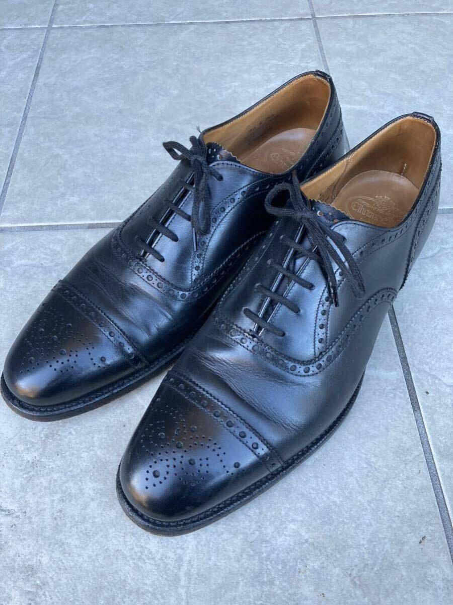 - 美品 英国製チャーチChurch's ハイグローブ/ディプロマット/HIGHGROVE/DIPLOMAT 173 80F ブラック黒高級ドレスシューズセミブローグ