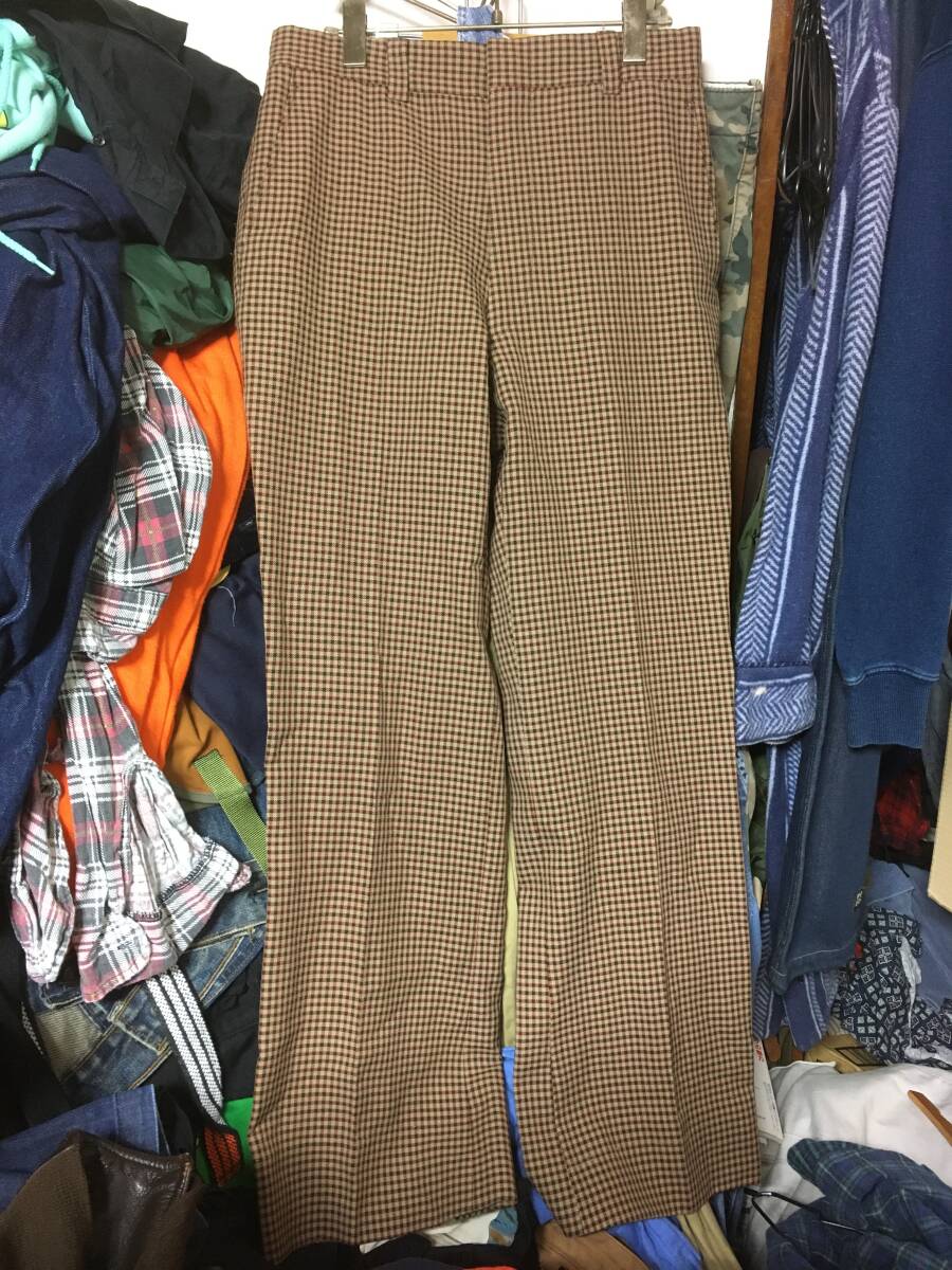 - 2410ビンテージ ポリ チェック フレア スラックス パンツOLDオールドUSED古着TALONタロン70~80's