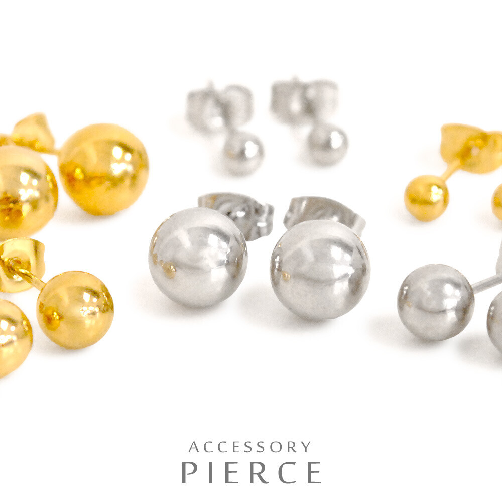 - ステンレスボールピアス 両耳用 丸玉ピアス シルバーカラースタッドピアス