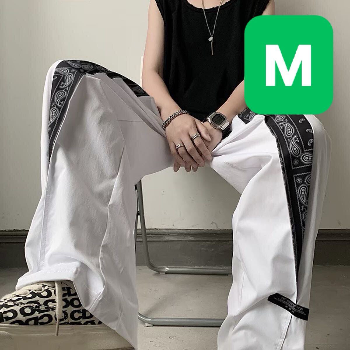 - イージーパンツ ペイズリー ワイドパンツ ストレートパンツ ボトムス トレンド ストリート オルチャン メンズ レディース ホワイト 白 M