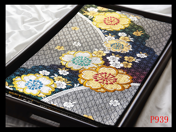 - P939厳選西陣 振袖可 麻の葉に桜散らし紋 黒色地 華やぎの品格 正絹純金糸六通高級美術袋帯 ◇検◇簪着物名古屋帯帯締め