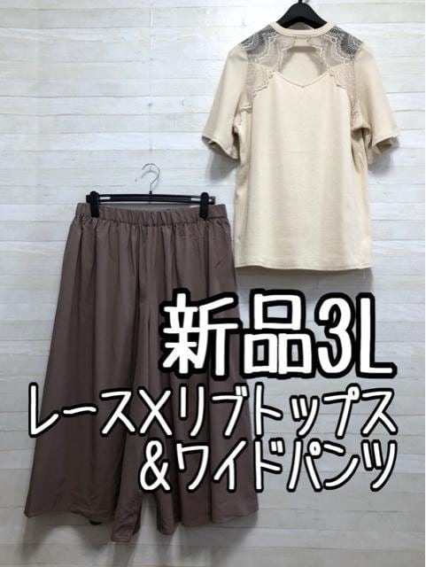 - 新品☆3L♪フェミニンセット♪リブトップス&ワイドパンツ♪☆f200
