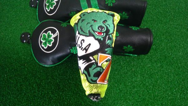 - 【異種同色】良品 緑色ヘッドカバー3個セット ベアーパターカバー・クローバーFW用2個 /0200