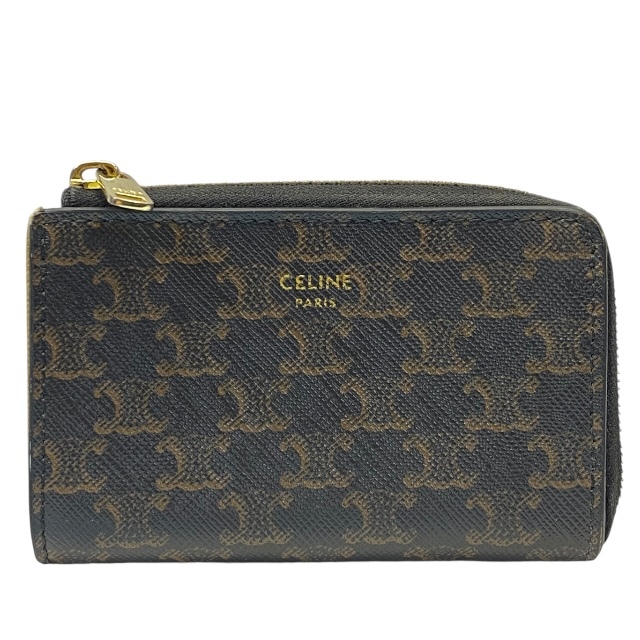 - CELINE セリーヌ 財布 コインケース 小銭入れ コンパクトウォレット ミニ財布 L字ファスナー トリオンフ ロゴ レザー ブラウン
