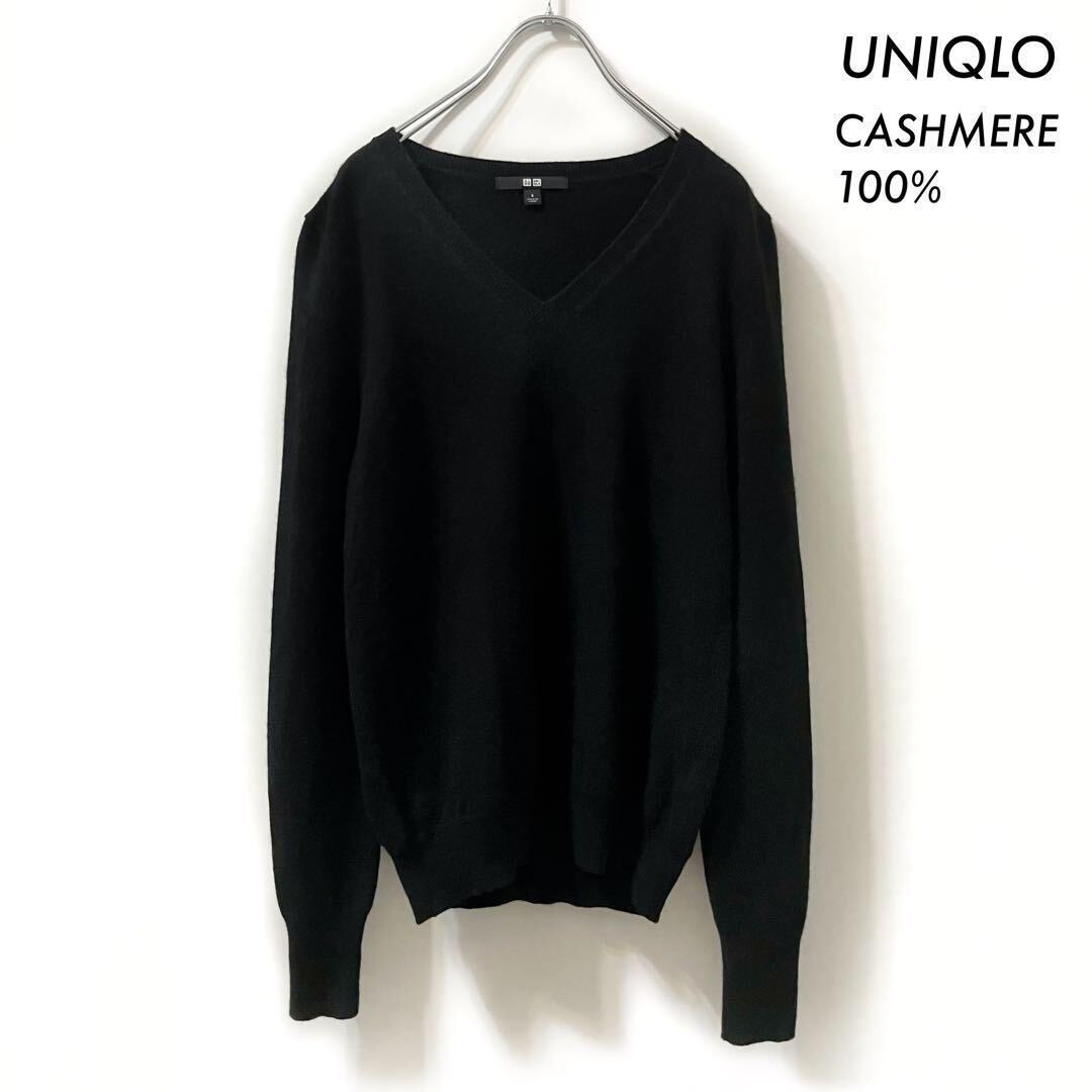 - 【送料無料】UNIQLO ユニクロ★カシミヤ100% 長袖ニット セーター Vネック ブラック 黒 Sサイズ レディース