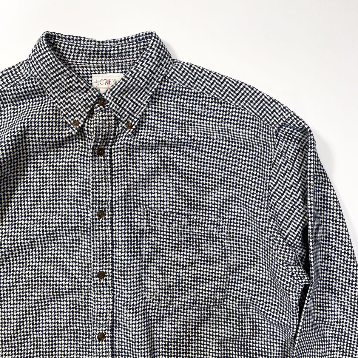 > 90s 80s J.crew コットン フランネル ネルシャツ 千鳥柄 ボタンダウン ビンテージ アメリカ製 usa old L 長袖 GAP 巨人タグ ネイビー BD