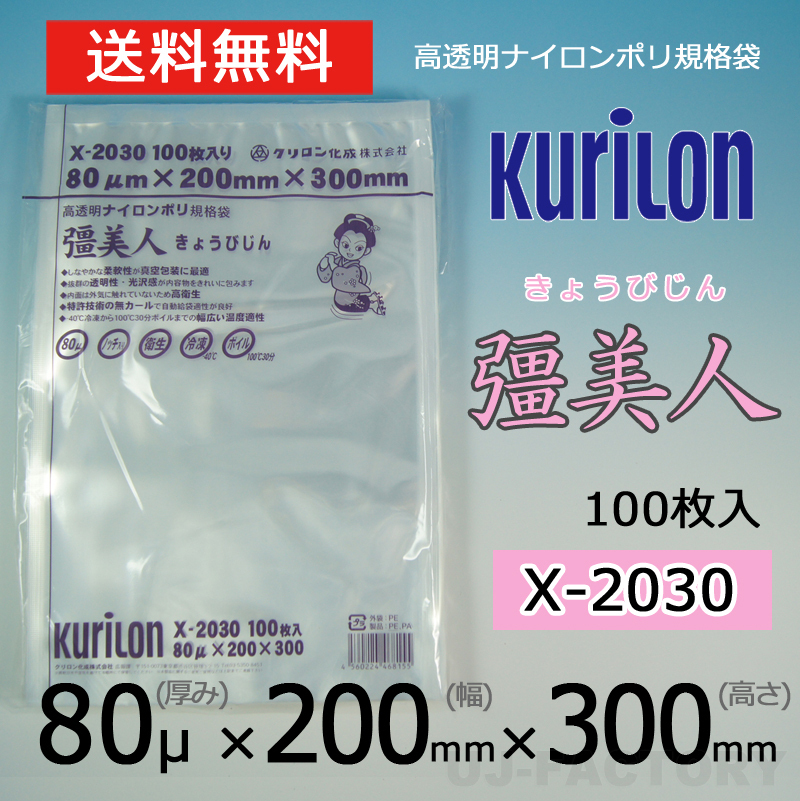 > 【即納!送料無料】彊美人 80ミクロン X-2030 ナイロンポリ袋/真空袋 (厚み 80μ×幅 200×高さ 300mm)【100枚】★五層構造・三方規格袋