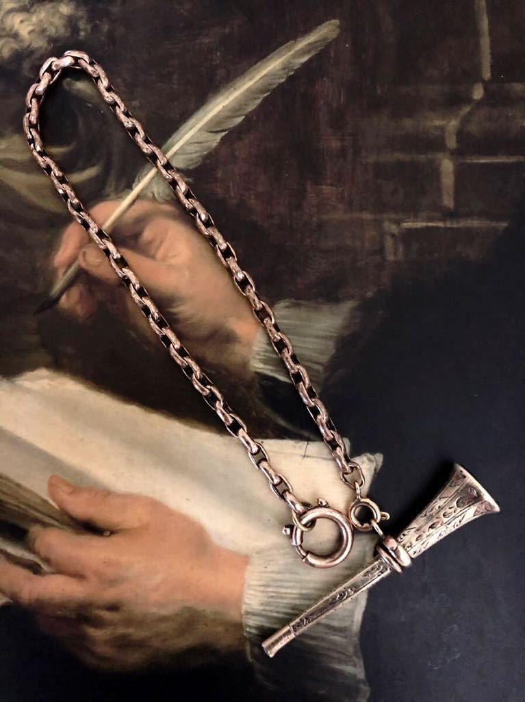 > 英国アンティークトランペット型 シールフォブ ブラッドストーン 石付 R.GOLD/鍵巻 懐中時計チェーン ウオッチキー ビクトリア期 1890年頃