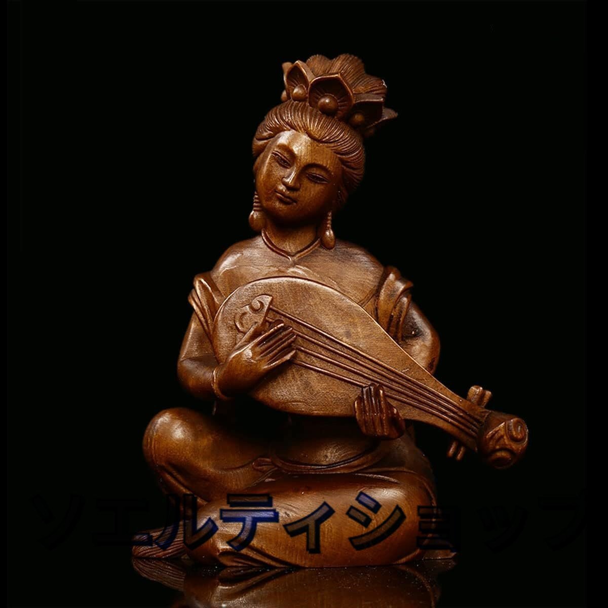 - 美品 ★木彫りの仏像 開運七福神 弁財天 高級天然ツゲ木彫り_仏像 置物 辨財天 仏像 木彫り 七福神 美術品 木製仏像(古美色)