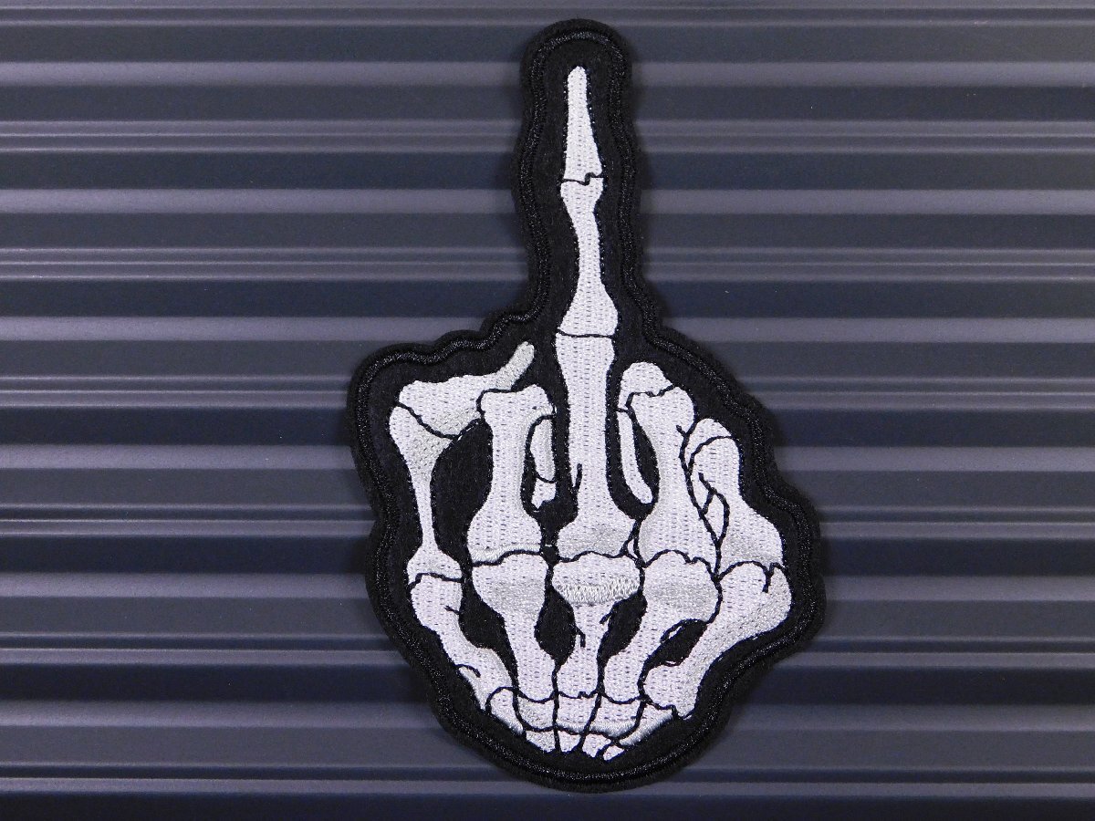 - ◆送料\110◆【スカルハンド】※《アイロン刺繍ワッペン/骸骨・ドクロ・中指》 アメリカン雑貨 刺繍ワッペン アイロンワッペン