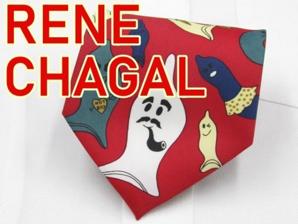 - 【ルネシャガール】 OC 892 ルネシャガール RENE CHAGAL ネクタイ 赤系 キャラクター プリント