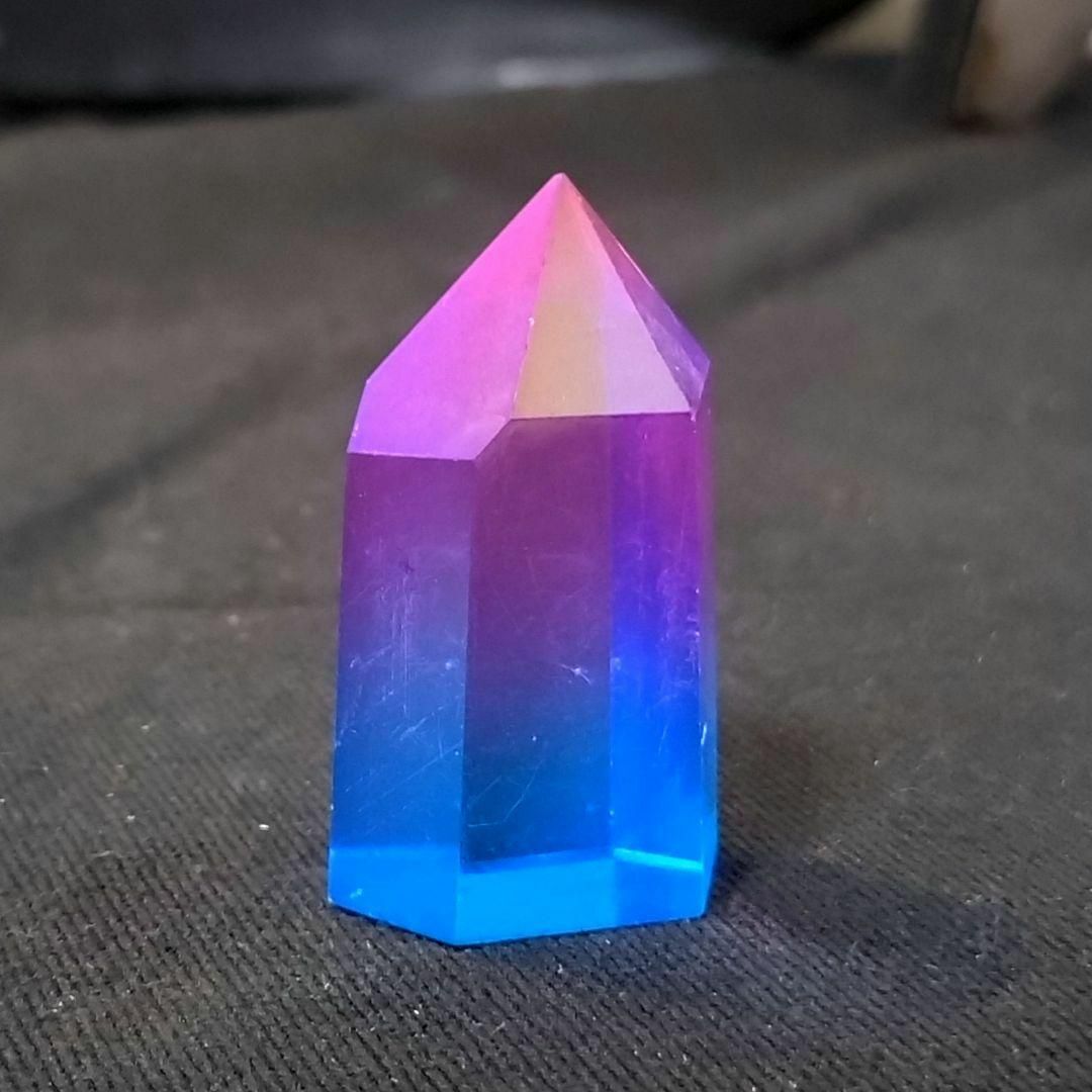 - パープル&ブルー バイカラーのオーラ水晶、六角柱ポイント ① 置物 風水