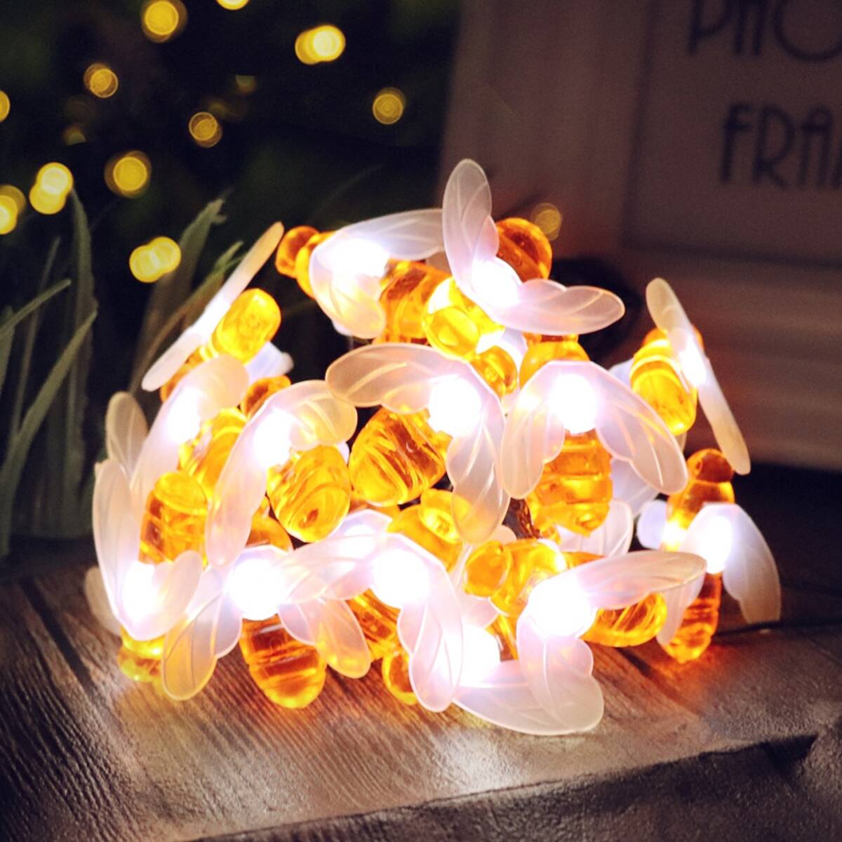 - ミツバチ イルミネーションライト ソーラーライト 防水 ホワイト