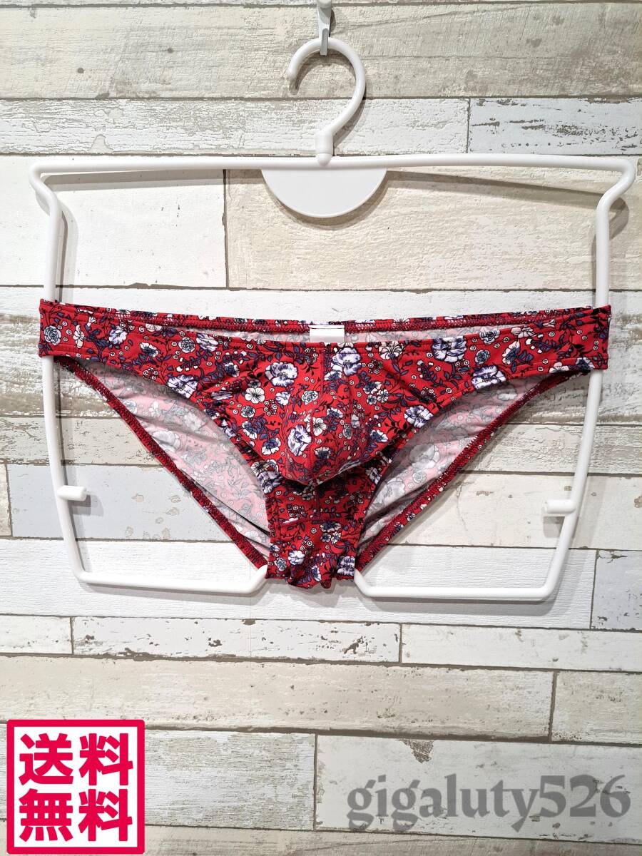 - 【送料無料】 メンズビキニ もっこりフルバックブリーフ(カラー:レッドフローラル柄/サイズ:L)