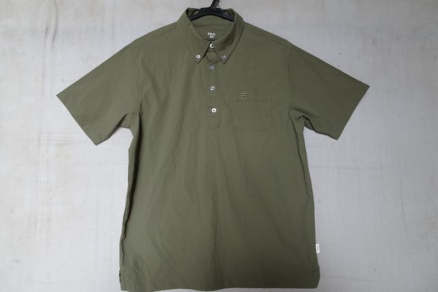 > FILA/フィラ/半袖ボタンダウンシャツ/プルオーバー/リップル加工生地/左胸ポケット/裾サイドスリット/カーキ/Mサイズ(10/11R)
