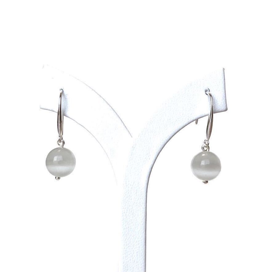 > 新品 天然石 ムーンストーン キャッツアイ シルバーピアス 10mm パワーストーン 猫目石 月 プレゼント 送料無料