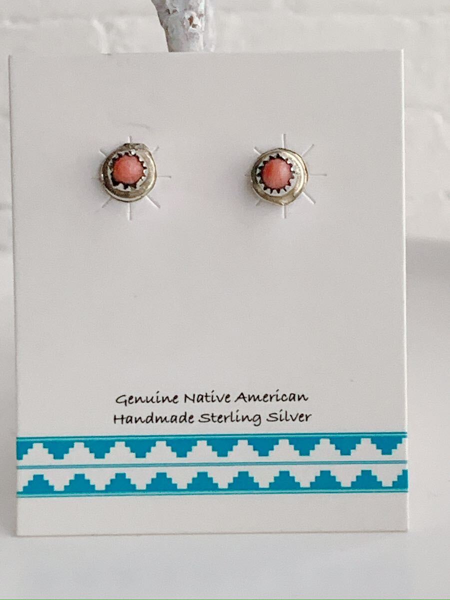 > インディアンジュエリー ピアス スパイニーオイスター ズニ Zuni ズニピアス ハンドメイド シルバーピアス 925 シェル 1013
