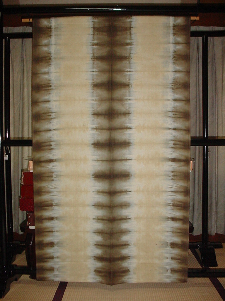 - 【 のれん「 棒縞 」暖簾 茶 絞り風合い染加工 天然草木染 綿100% インテリア用品 海外土産 新品 】