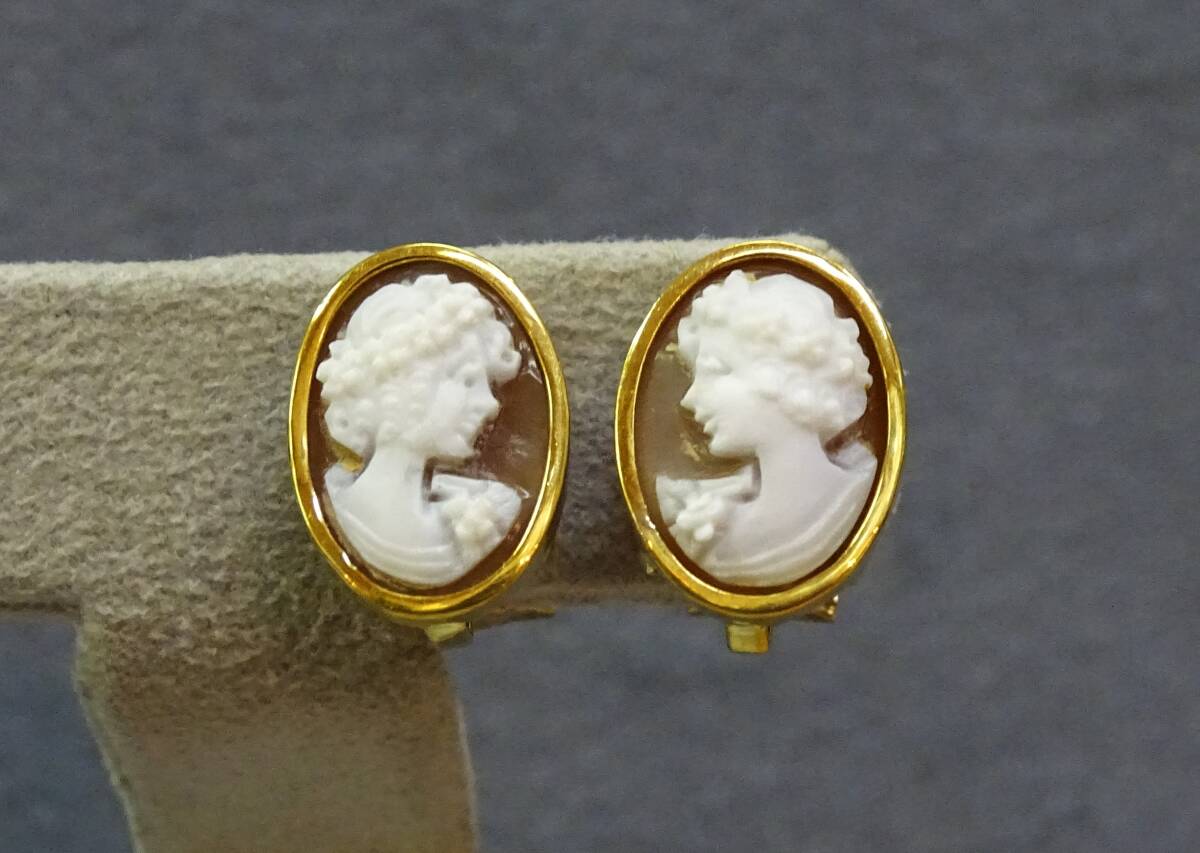 - 上質【カメオ】K18・イヤリング・消費税・送料込み・バネ式留め金具・新品・未使用・鑑別書