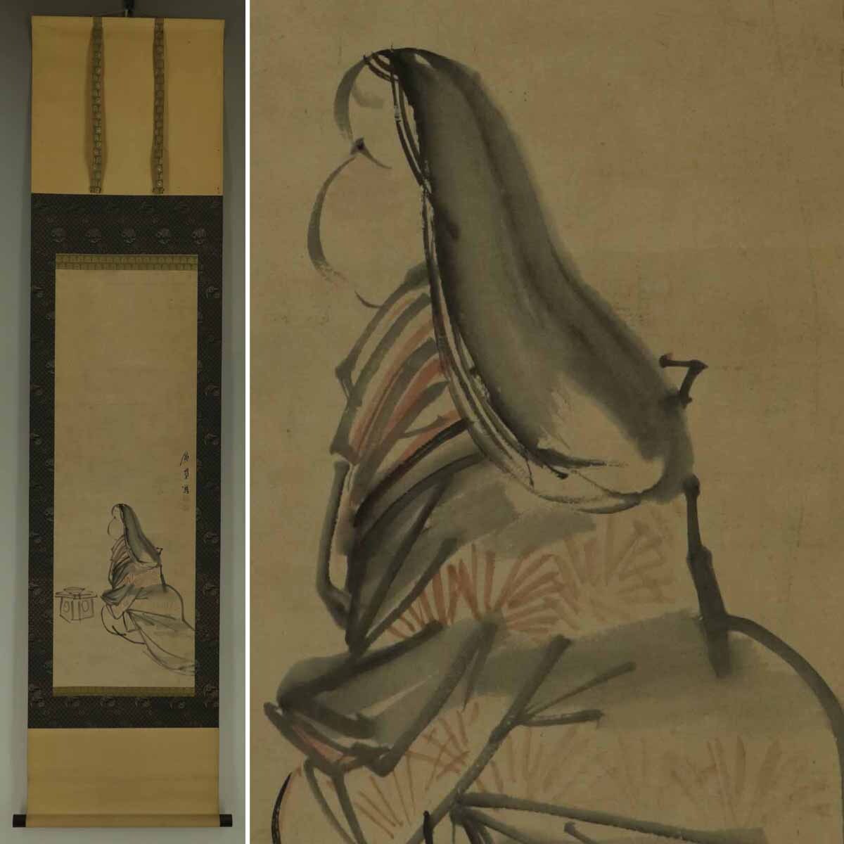 - 【肉筆】古画【お多福図】◆紙本◆掛軸 s01102